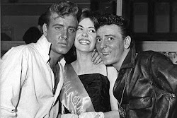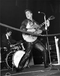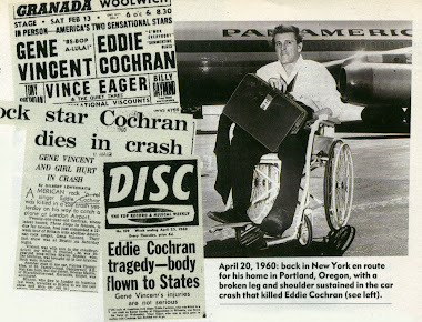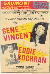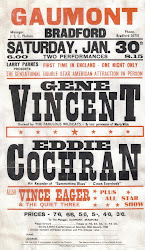 Tribute to Gene Vincent and Eddie Cochran, Special 1960 UK Tour, Jubilee Memorial Rock'n'Roll At the initiative of Philippe Fessard were presented in the space of an extended week-end three concerts at Pagney (Meurthe et Moselle - 19 November), Pierrelaye (Val d'Oise - 20 November) and Etampes (Essonne - November 21 ) commemorating the Gene Vincent and Eddie Cochran tour that began in January 24, 1960. Project that brought together friendly and welcome Thierry Le Coz, Erwin Travis and The New Virginians as performers. The year 2010 with the publication of two books and three concerts, will remain in France as the best Gene Vincent's year since long.The Etampes' theater built in the 19th century and having a capacity of about two hundred persons (ground floor + 2 balconies) was an ideal place to get closer to concert halls as they were still in the 50's and find the atmosphere of the tour organized by Larry Parnes, who unfortunately took the life of Eddie Cochran. At the entrance, we had the pleasure of receiving a small program which took over the presentation of the original and have the stand Thundersound Records where, besides a large selection of records, was presented the book / LP Gene Vincent "Tribulation a rocker in France and francophone countries" (Gareth McLean). An essential publication as is the recent book by John William Thoury "Gene Vincent - Dieu du Rock 'n Roll". After a presentation by Marcel Rapp (acting as Master of Ceremony) and a short tribute to Charlie Barbat who left us October 12, 2010, a superb documentary on Gene Vincent and Eddie Cochran, composed of rare documents (photos, memorablia, movies and shows TVs), was screened. Excellent introduction to the show.The New Virginians once in place (Philippe Fessard- gtr - Damien Daigneau - pno - Fred Kolinsky - dms - Gilles Tournon - bs), Thierry Le Coz appeared backs to the audience, as did Eddie during this tour, wearing the sunglasses, leather pants, tartan shirt and a plaid bolero. Without falling into plagiarism, Thierry and the New Virginians (occupying the place of Marty Wilde's Wildcats) goes on superb interpretations of "Hallelujah I Love Her So," "Milk Cow Blues", "What'd I Say" "Twenty Flight Rock," Sweet Little Sixteen, "" C'mon Everybody "," Have I Told You Lately That I Love You "(all recorded for radio / TV " Boy Meets Girls "and" Saturday Club "). Follow "My Way"," "Pretty Girl", "Teenage Heaven," "Jeannie, Jeannie, Jeannie," "My Love To Remember", "Nervous Breakdown", "Skinny Jim" and "Three Steps to Heaven" and a few other pieces of the repertoire of Eddie. Nothing to add than... I get my fee ride for the Leeds Empire or The Ipswich Gaumont! What a trip!After an intermission of 30 minutes and a change of clothes, The New Virginians (instead of the Beat Boys) wearing satin shirts were back on stage to back Travis Ervin wearing all black leather outfit. As in the first part, the songs sung by Gene in 1960 for "Boy Meets Girls" and "Saturday Club" were taken up brilliantly : "Say Mama," "Summertime," "Rocky Road Blues," "Wild Cat" "My Heart" and, of course, "Be Bop A Lula." Among other songs included "Frankie and Johnnie", "Look What You Gone and Done to Me," "Lotta Lovin '", "Dance to the Bop," "I Got A Baby", "Bluejean Bop," "Over The Rainbow "and a great rendition of " Baby Blue ". Damien Daigneau was excellent at the piano and voice support provided to Ervin by him and Fred Kolinsky absolutely remarkable. Philippe Fessard and Gilles Tounon have as usual added a visual and musical dimension much appreciated. Although both artists to accompany had a different directory and style, the group returned with authentic sound and true style of each. Eddie and its easy going way of life, Gene and its rage to survive !The two friends found themselves together on stage to close the program performing "White Lightnin", "Pistol Packin' Mama" and "My Babe". 50 years after this legendary tour with new performers / musicians, magic has functioned perfectly. The New Virginians quality and the vocal talent /showmanship of Thierry and Ervin gave us two hours and half of a rare pleasure. Hey, there, all you Daddy-Os and Mommy-Os… Hallelujah ! I love them so !